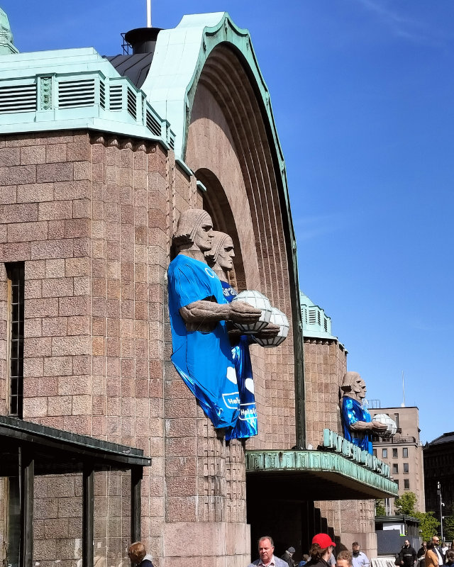中央駅前では、あの有名な巨人像が青いユニフォーム姿。イベントに合わせて衣装を着ることがあるのですが、このときの理由はすっかり忘れてしまいました。聞いたときは「へー」と思ったのですが、全く思い出せない…メモしておけばよかったですね。