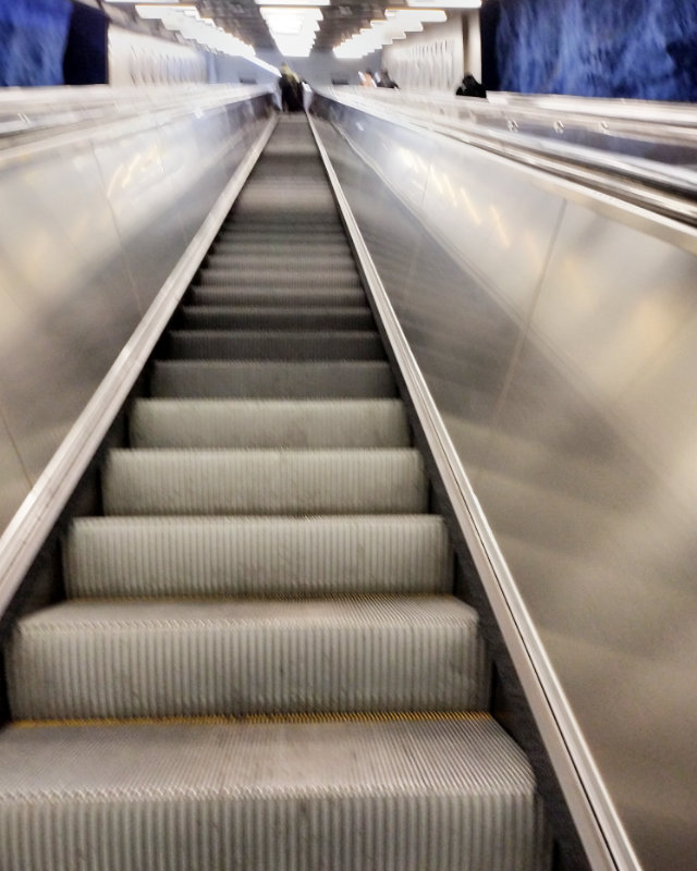 アーランダ空港へはバスで向かうため、まずは地下鉄で中央駅へ。ところが中央駅ではエスカレーターが壊れていて、一瞬エレベーターのある場所に行こうかと思うものの、ホームに戻るのが面倒。仕方なく長い長い、本当に長いエスカレーターを重いスーツケースを持ってひいひい言いながら上がる羽目に。この想定外の出来事に出発前から体力消耗……。