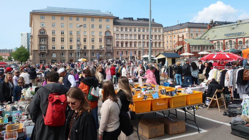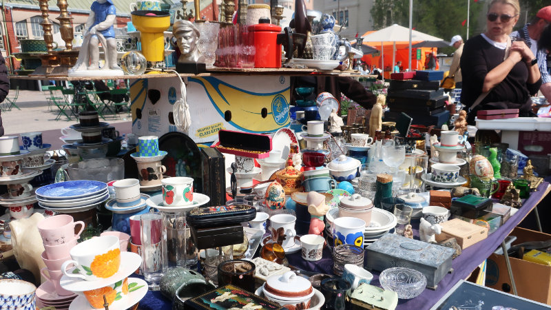 フィンランド2日目の朝は、ヘルシンキでいちばん有名な蚤の市「ヒエタラハティ(Hietalahden kirpputori)」へ。この日は朝から快晴。日本人の間でも一番知られているフィンランドの蚤の市かもしれませんが、実は私は初めて行った…と思います(言い切る自信はありませんが)。この20年弱でフィンランドには30〜40回ほど訪れていると思いますが、仕事だと案外こういう場所に立ち寄る時間がないものです。