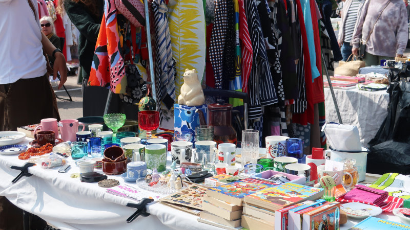 動画を見ていただくと分かる通り、ヒエタラハティ蚤の市には、アラビアのヴィンテージ食器やマリメッコの古着など、日本人にも人気のアイテムだけでなく、本やピンバッジ、ちょっとしたおもちゃやガラクタのようなものまで並んでいます。フィンランドの人たちの日常が垣間見えるのも、このマーケットの魅力のひとつ。観光客だけでなく、地元の人々も日用品を探しに訪れています。