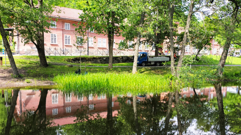 Karjaa駅で無事にルツ子さんと再会できたときは、心の底からホッとしました。ちなみにフィスカルス村へはアクセスがあまり良くなく、Karjaa駅からは本数の少ないバスを利用するのが一般的です。時間を合わせるのもなかなか大変なので、こうして迎えに来ていただけるのは本当にありがたい。そこから車で15分ほど走り、緑に囲まれたフィスカルス村へ。途中、日本から来ているルツ子さんのお友だちで、人形作家のお二人とも合流しました。