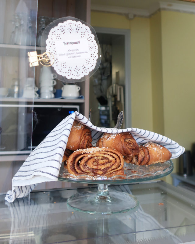 食後は、ルツ子さんが「フィンランドでいちばん美味しい」と断言するシナモンロール(コルヴァプースティ)があるカフェへ。さすがにお腹はいっぱいだったので、その場では食べずにテイクアウトすることにしました。紙袋に入れてもらったシナモンロールは、見ただけで「絶対に美味しい」と分かる佇まい。これを後でゆっくり食べる楽しみがあると思うと、なんだか気持ちが少し晴れやかになりました。