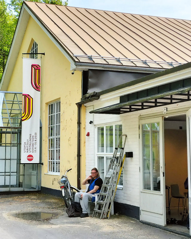 この日は6月10日。ルツ子さんは、6月15日から始まるフィスカルス村の作家たちによる合同展の準備の真っ最中でした。そんな忙しい時期にもかかわらず、特別に展示会場に入れてもらうことに。