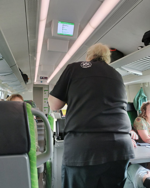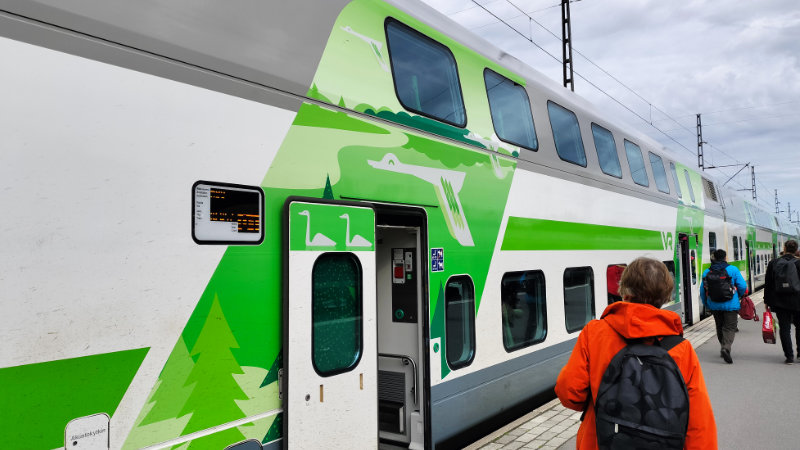 Karjaa(カリヤー)駅からヘルシンキへ戻る長距離列車は指定席。ようやく座って一息……と思ったその瞬間、通路を挟んだ隣の席に見覚えのある顔が。