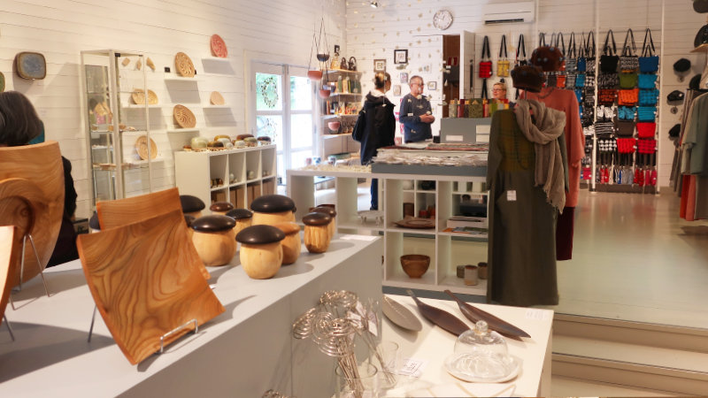 その後も、ギャラリーやショップを順番に訪ね歩き、個性的で魅力あふれる手芸や工芸作品、ジュエリーの数々を作家の方も含めて紹介していただきました。